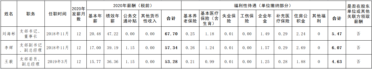煙臺財(cái)金集團(tuán)負(fù)責(zé)人2020年薪酬披露信息表(單位:萬元)